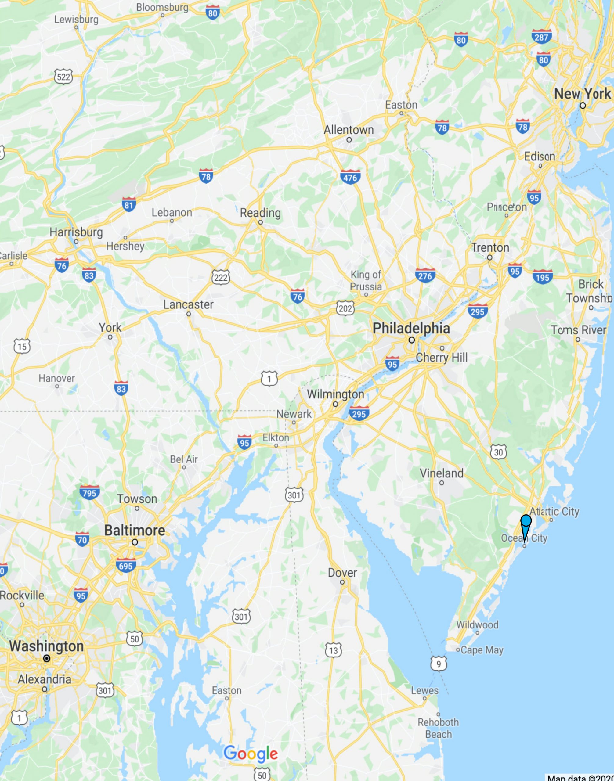 Take the Garden State Parkway South to Exit 30 (Ocean City), and continue straight passing through 2 traffic lights, to the bridge ramp, and bridge into Ocean City, New Jersey. Once in Ocean City, proceed straight to Ocean Avenue. Turn right onto Ocean Avenue for four blocks (13th Street).